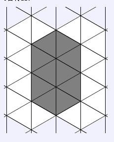 在三角形图上,每个小正三角形的面积都是1。可以在边上走出一个多边形,(即三角形网格图的边界,见下图)使得围成一定的面积。 我们可以用编码来表示走法:(即从一条边到下一条边的方向改变量) a左转120° b左转60° c直走 d右转60° e右转120°
