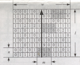不妨将输入文件中第i+1行,第j列的整数记做vij(1<=j<=w,1<=i<=l),