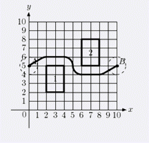 本题是多组数据,第一行一个整数T(T<=30)表示数据组数,接下来依次描述每一组数据,每组数据第一行两个整数r,n(1<=r<=100,0<=n<=30)如上所述。第二行包含4个整数xA,yA,xB,yB,(xA,yA)表示起点A坐标,(xB,yB)表示终点B坐标。接下来n行每行4个整数x1,y1,x2,y2,(x1,y1)表示矩形障碍物左下角坐标,(x2,y2)表示矩形障碍物右上角坐标。 矩形不会互相覆盖或接触,起点的坐标是合法的,即一开始不会与任何矩形相交(但是可能和某些矩形相切)