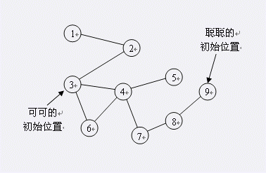 第一个时刻,聪聪先走,她向更靠近可可(景点4)的景点走动,走到景点2,然后走到景点3;假定忽略走路所花时间。