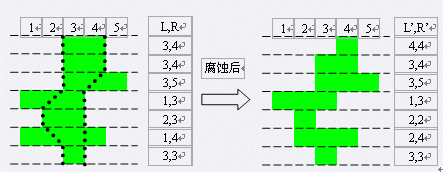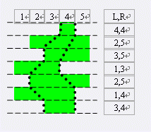 剖分成n条宽度为1的横条,每个横条最左边一格的x坐标设为Li,最右一格的的x坐标设为Ri。则(n,L1,L2,..,Ln,R