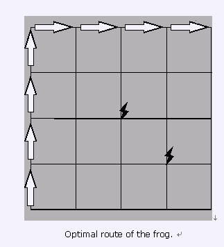 第一行包含两个整数: wx 和 wy 分别表示田地的宽和长( 2 <= wx, wy<= 1 000). 第二行包含四个整数: px, py, kx 和 ky 其中 (px, py) 为青蛙的起始位置, (kx, ky) 为目的地位置( 1 <= px, kx <= wx, 1<= py, ky<= wy). 第三行一个整数 n – 表示scarefrogs的总数( 1<= n<= wx . wy). 接下来n 行描述所有scarefrogs的坐标. 坐标用xi 和 yi 来描述第ith个 scarefrog的位置 ( 1 <= xi<= wx, 1<= yi<= wy). 没有两个scarefrogs在同一个位置出现并且不会出现在(px, py) nor (kx, ky)上.