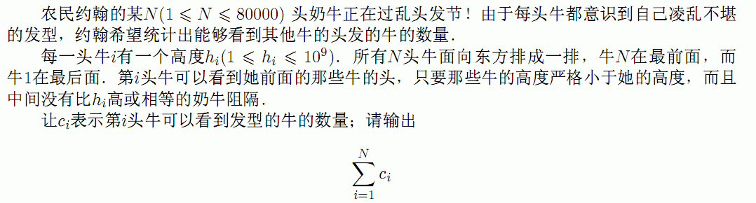 * Lines 2..N+1: 第 i+1 是一个整数,表示第i头牛的高度。