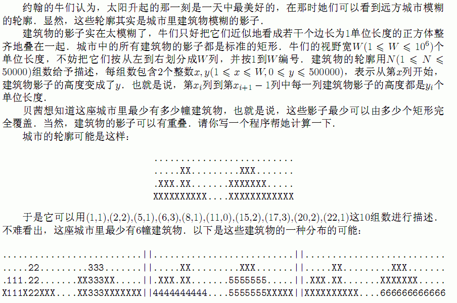 输出一个整数,表示城市中最少包含的建筑物数量.