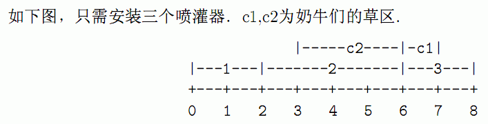 约翰的奶牛们发现山督上的草特别美味.为了维持草的生长,约翰打算安装若干喷灌器.为简化问题,山脊可以看成一维的数轴,长为L(1≤L≤10^6),而且L-定是一个偶数.每个喷灌器可以双向喷灌,并有确定的射程,该射程不短于A,不长于B,A,B(1≤A≤B≤103)都是给出的正整数.它所在位置的两边射程内,都属它的灌溉区域.现要求山脊的每一个区域都被灌溉到,而且喷灌器的灌溉区域不允许重叠, 约翰有N(1≤N≤10^3)只奶牛,每一只都有特别喜爱的草区,第i奶牛的草区是[Si,Ei],不同奶牛的草区可以重叠.现要求,每只奶牛的草区仅被一个喷灌器灌溉. 寻找最少需要的喷灌器数目.