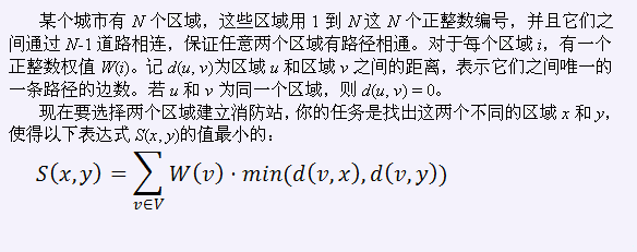 14 【样例解释】 选取区域2和区域3。 【数据规模和约定】 用H表示距离区域1最远结点的距离,即d(1, u)的最大值。 对于30%的数据满足:2 ≤ N ≤ 5000、H ≤ 30 对于70%的数据满足:2 ≤ N ≤ 50000、H ≤ 30 对于100%的数据满足:2 ≤ N ≤ 50000、H ≤ 70、W(i) ≤ 100