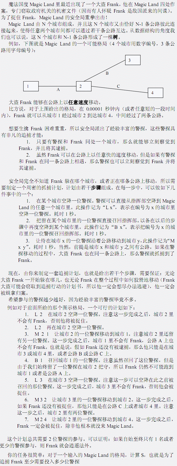 第一行请输出一个整数 S,代表追捕计划需要多少位警探。