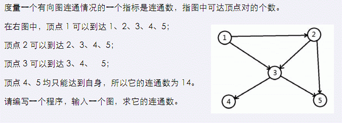 输入数据第一行是图顶点的数量,一个正整数N。 接下来N行,每行N个字符。第i行第j列的1表示顶点i到j有边,0则表示无边。