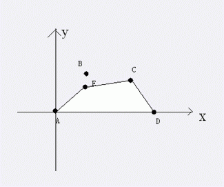 上图中,A,B,C,D,E点为A国城市,且目前都要保护,那么修建的防线就会是A-B-C-D,花费也就是线段AB的长度+线段BC的长度+线段CD的长度,如果,这个时候撤销B点的保护,那么防线变成下图