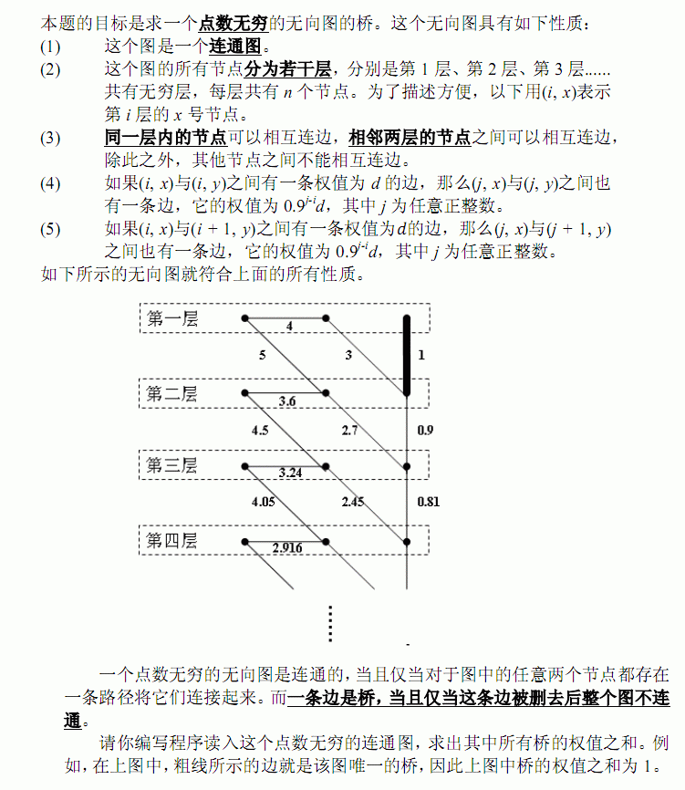只有一行,包含一个实数,即所有桥的权值之和,四舍五入保留两位小数。
