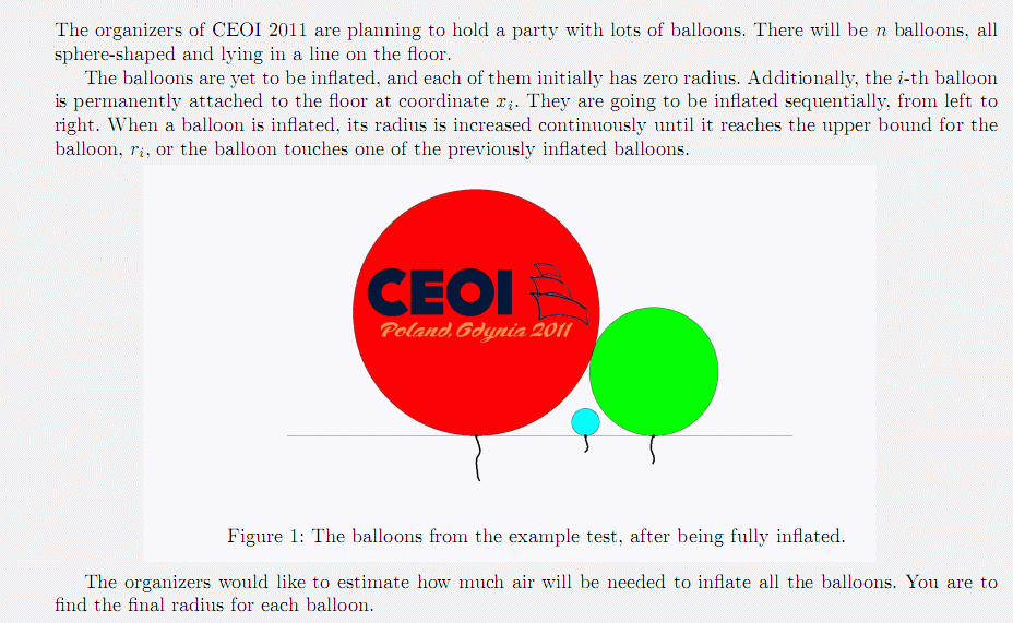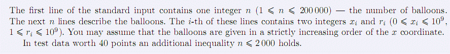 很多有着固定的横坐标气球没有固定的半径,然后求从左到右依次吹这些气球,它们的半径最大是多少。