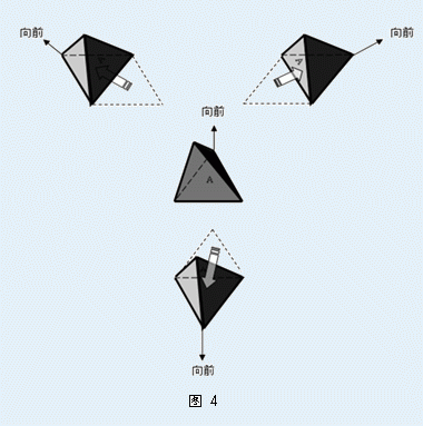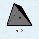 正四面体总共有4个面,每个面都是一个正三角形。现在把它的一个面标记上字母A,如图 3中所示,A标记在底面上: