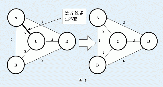 输入文件的第一行有3个正整数n、m、Lab分别表示无向图中的点数、边数、必须要在最小生成树中出现的AB边的标号。