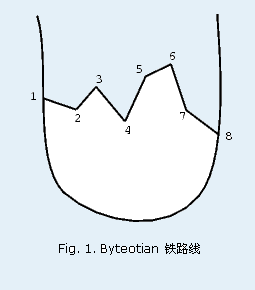 Byteotia 城位于一个半岛上. 从king Bitol 开始铁路开始成为Byteotia主要的交通途径. King Bitol 建造了一个超速铁路线. 这条干线连接了半岛的西边和东边, 经过了Byteotia 的所有城镇,这些城镇从1 到 n. 城镇1 在西海岸而城镇n 在东海岸.
