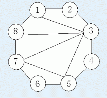 接下来2*N-3行(环上有N条公路,环中有N-3条公路),每行两个正整数u、v,表示城市u与城市v之间有一条公路。