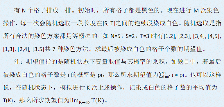 染色一次共有7种等概率方案(题目描述中提到),其中染2个格子有4种,染3个格子有3种,期望值为2*4/7+3*3/7=2.429。