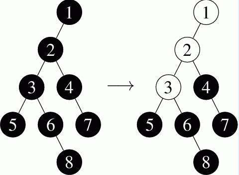 第一行:球的个数N,操作个数Q (N, Q <= 100 000)下面N行:第i个节点的父亲。如果是根,则为0 接下来Q行:op num