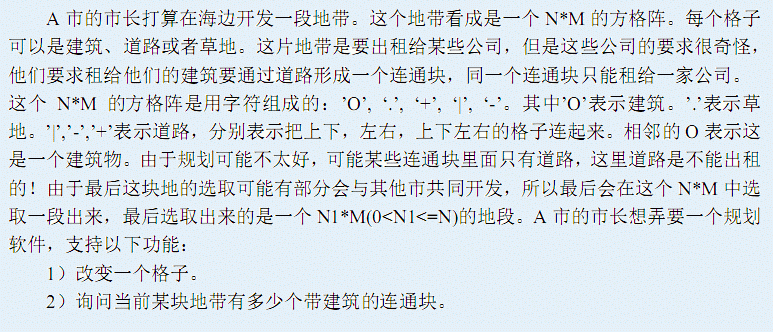 接下来的 N 行,每行 M 个字符表示这片地带的初始情况。