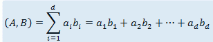 两个d 维向量A=[a1,a2,...,ad]与B=[b1,b2,...,bd]的内积为其相对应维度的权值的乘积和,即: