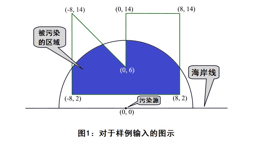数据保证多边形不自交或触及自身,没有顶点会位于圆弧上。