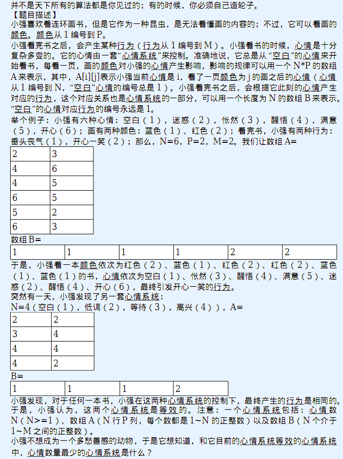 了一个心情系统。第一行是心情数N,接下来N行每行P个正整数表示数组A,接下来一