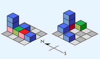 小C的积木都是一些个1*1*1的小方块,每个方块都有一种颜色,红色,绿色或蓝色。小C玩积木的场所是一个N*N的网格,玩积木时,他会将积木整齐地摞在网格上。