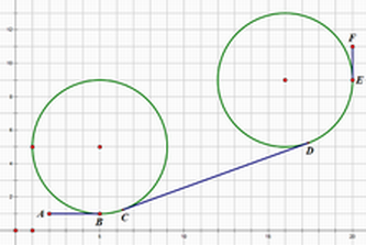 n≤500,-1000≤xi,yi,ri,Sx,Sy,Tx,Ty≤1000,保证起点和终点都不在水域的内部或边界上,起点和终点不重合