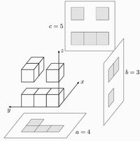 在三维空间中指定一些(x,y,z),将[x,x+1]*[y,y+1]*[z,z+1]的方块填充,得到一些方块。